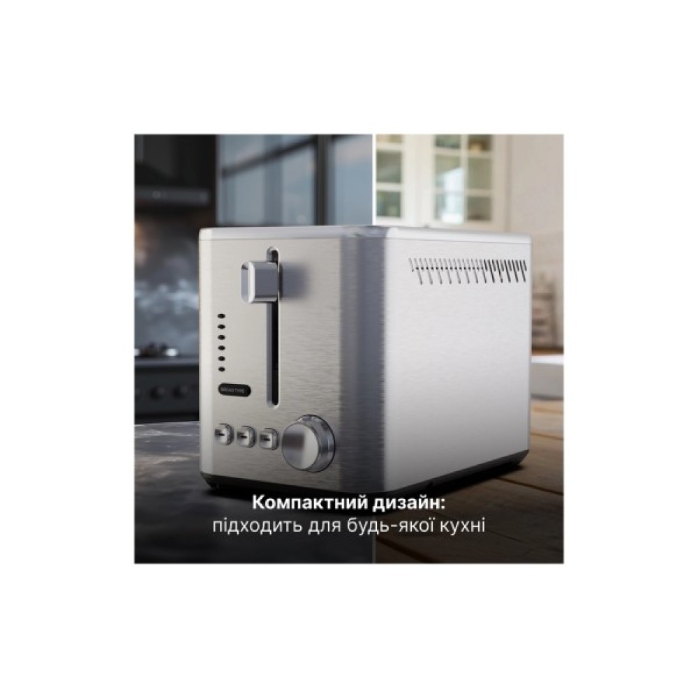 Цей тостер легко впишеться навіть у найменшу кухню. Завдяки продуманому компактному дизайну він займає мінімум місця, не втрачаючи при цьому професійної функціональності. Стильний, зручний і ненав'язливий — він виглядає гармонійно в будь-якому інтер’єрі та завжди під рукою, коли потрібен