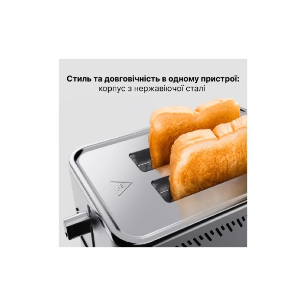 Міцний і елегантний, цей тостер виготовлений із високоякісної нержавіючої сталі, що не боїться відбитків пальців і високих температур. Він не лише додає кухні сучасного вигляду, а й зберігає бездоганний вигляд і функціональність навіть за щоденного використання. Надійність і стиль — в одному корпусі