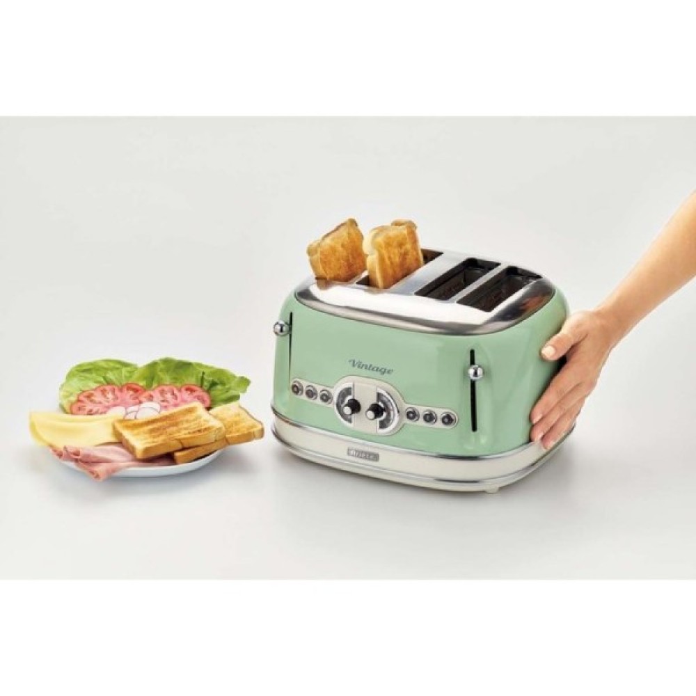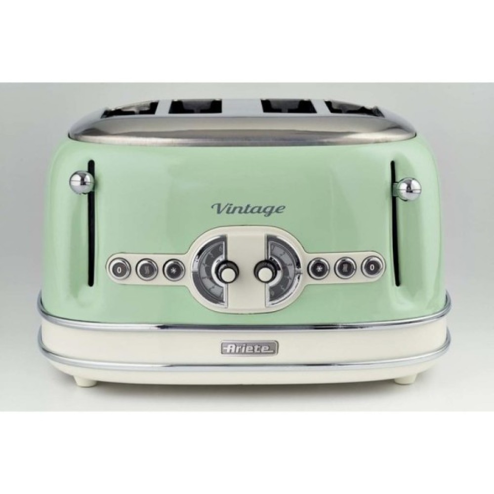 Виконаний в стильному ретро-дизайні тостер серії Vintage від італійської компанії Ariete - це продуктивний тостер потужність 1600 Вт. Особливістю даної моделі є можливість одночасного підсмажування чотирьох скибочок хліба, при цьому ступінь прожарювання регулюється за схемою 2 х 2.