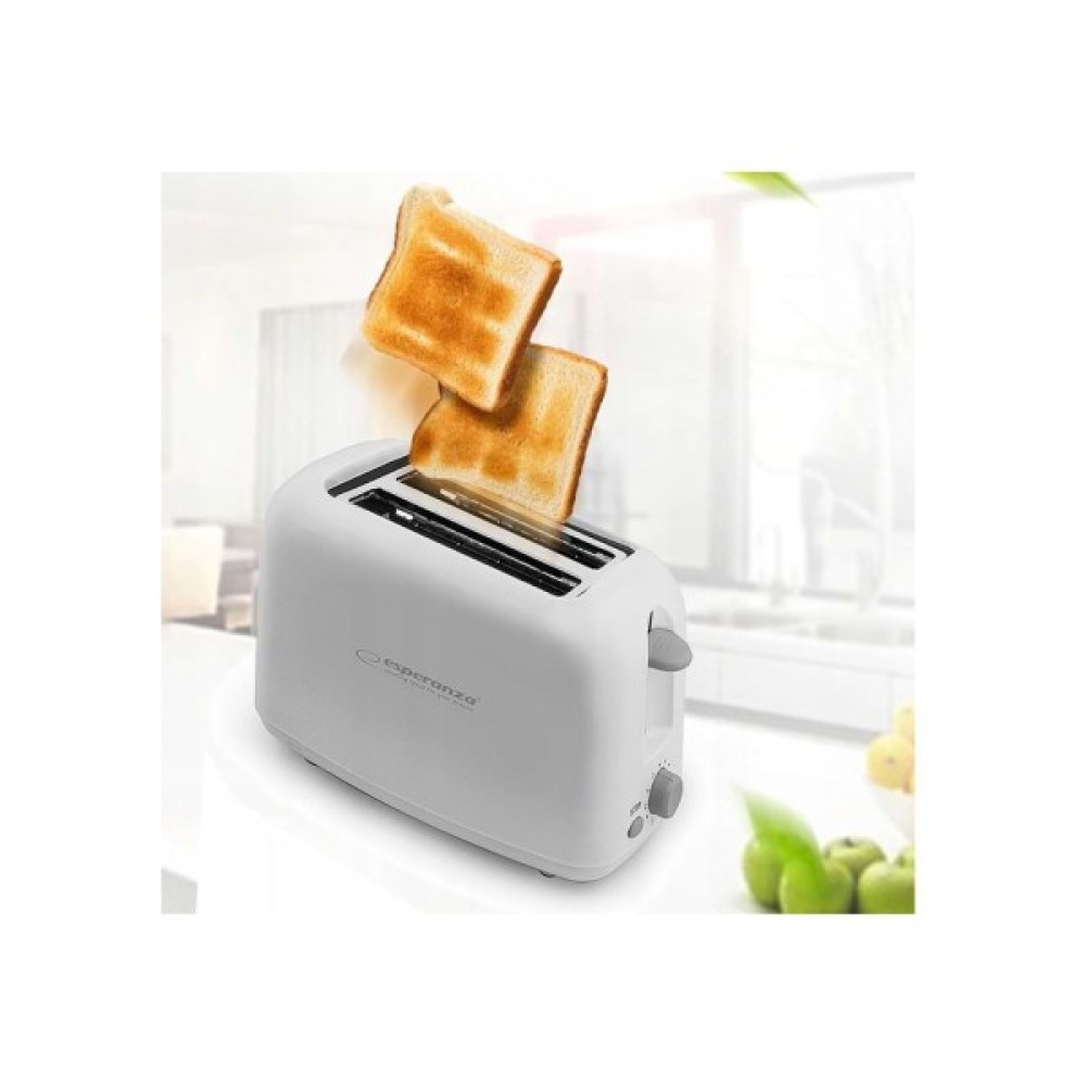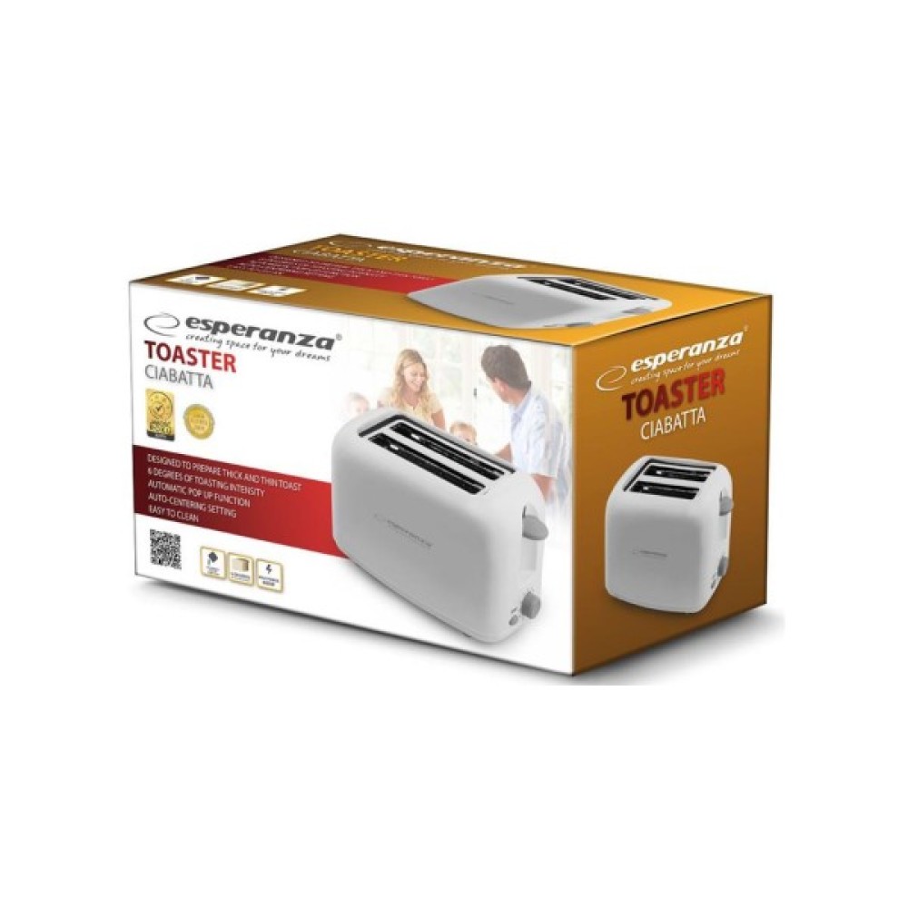 Тостер Esperanza Ciabatta EKT002 працює швидко та якісно, ​​дозволяє встигнути зробити до сніданку ситні бутерброди. Виріб передбачає два ідентичні відділення для хліба. Встановлюється на стіл за допомогою прогумованих ніжок, тому немає ризику скинути корпус на підлогу.