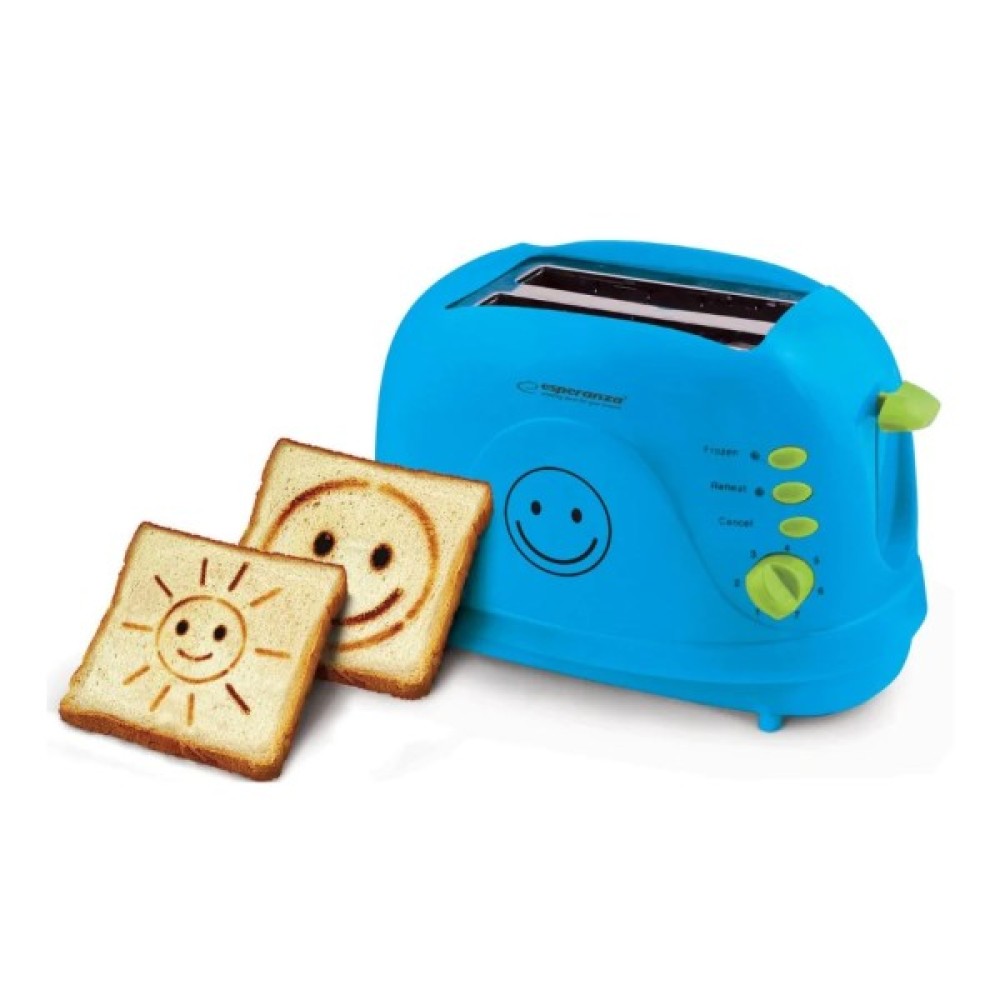 Тостер Esperanza SMILEY EKT003B дозволить швидко приготувати грінки з хрусткою скоринкою. Тостер розрахований на приготування одночасно двох шматочків грінок. Високий підйом тостів гарантує безпечне вилучення тостів із тостера, а функція переривання приготування створить додаткову зручність у приготуванні смачних тостів.