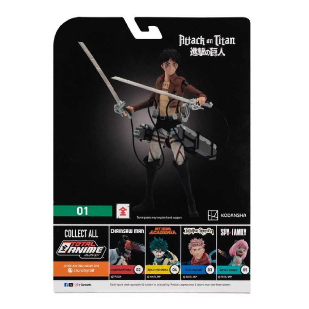 Ігровий набір TOTAL ANIME серії «Атака титанів» W1 - ЕРЕН – це частинка манґи, яку ви можете оживити власними руками! Грайте, відтворюйте сцени з манґи й аніме, створюйте власні сюжети подій або просто колекціонуйте – ігрова фігурка дає змогу втілити будь-який задум! Такий ігровий набір стане справжньою знахідкою для колекціонерів, фанатів і шанувальників «Атака титанів»!