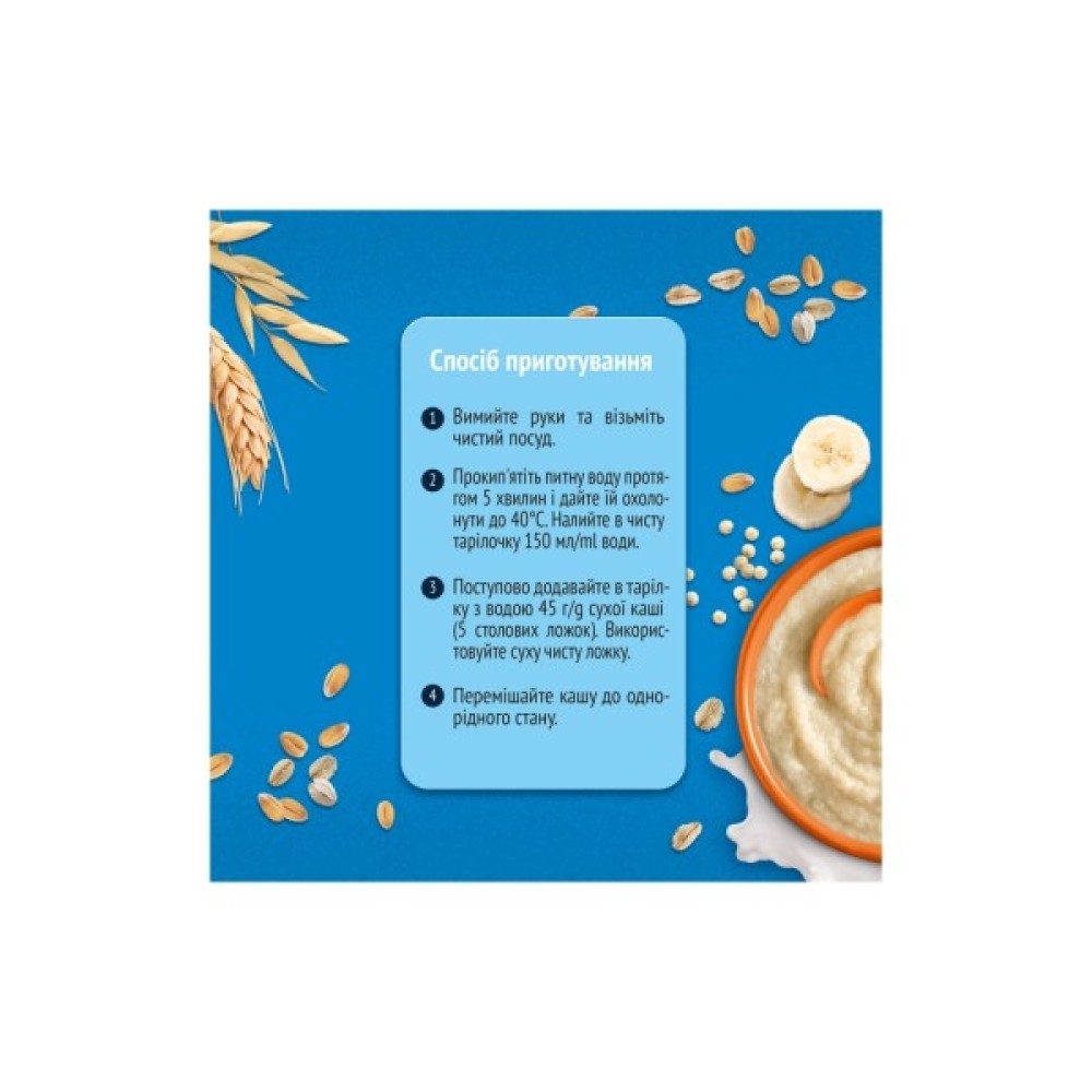 Не варити! Годуйте дитину чистою ложкою. Кашу слід готувати безпосередньо перед кожним годуванням. Не зберігайте розведену кашу, що залишилась після годування.