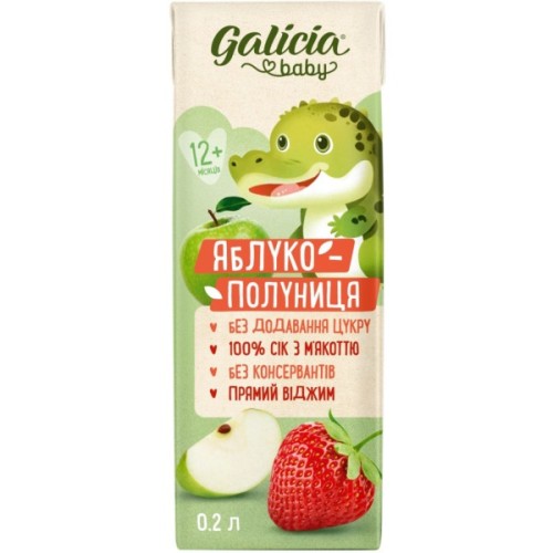 Сік, дитячий, Galicia, Baby, яблучнополуничний, з, м’якоттю, натуральний, 200, мл, 4820209564280
