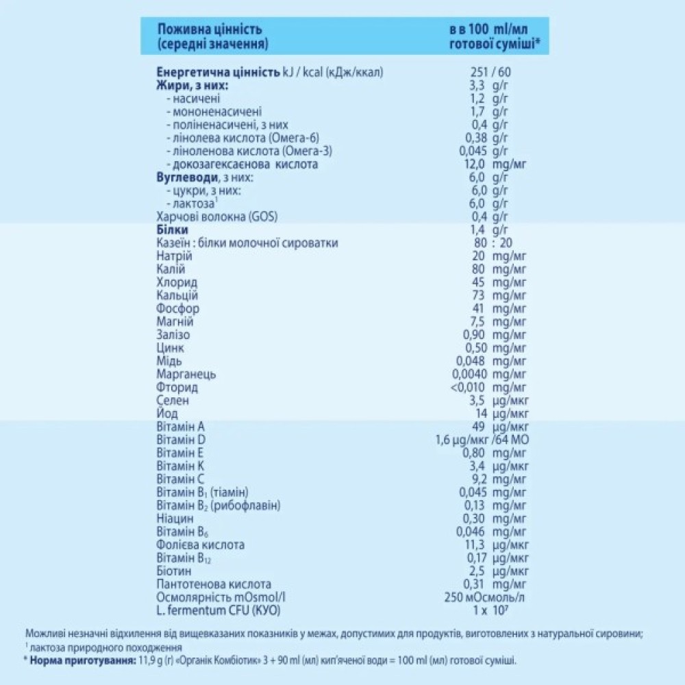 Суміш містить пребіотик GOS і пробіотик L. fermentum, які клінічно доведено сприяють формуванню здорової мікрофлори кишківника, важливої для травлення та імунної системи.