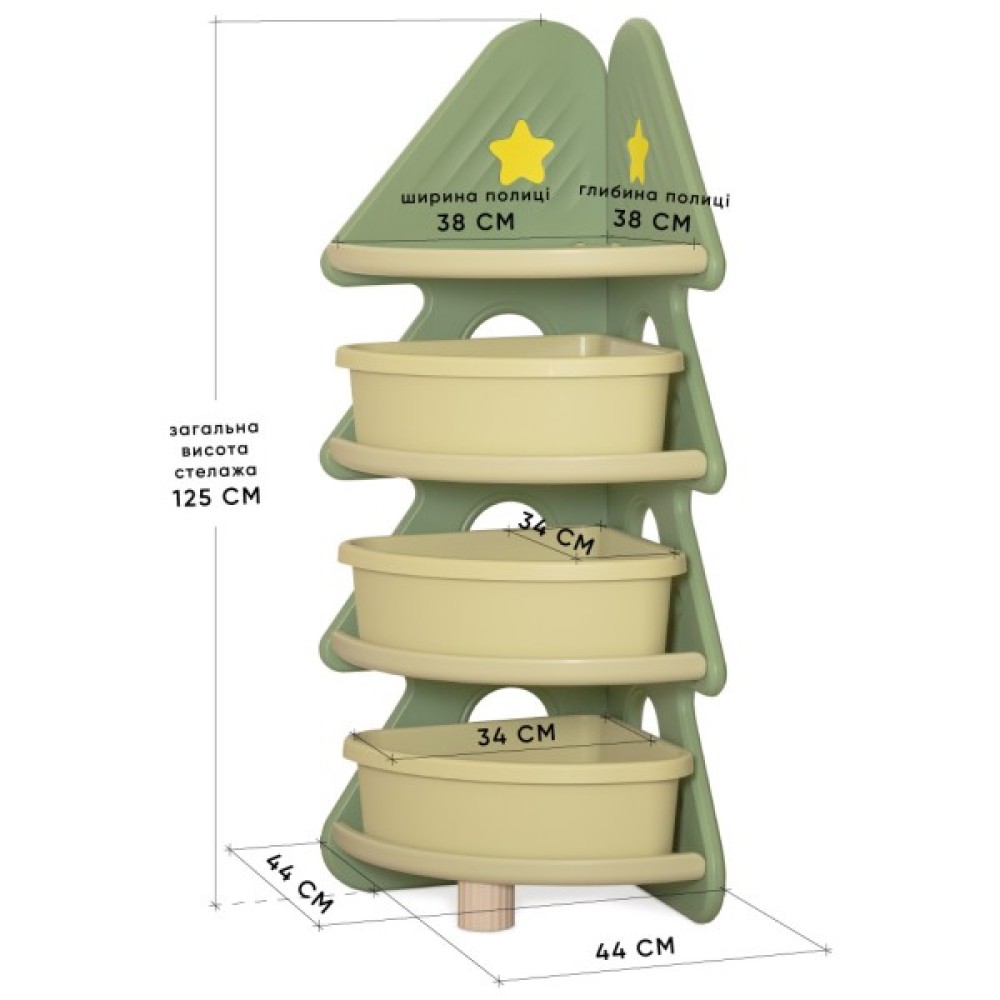 Дитячий стелаж Mealux Yoda — це зручна та оригінальна система зберігання у вигляді ялинки, яка ідеально доповнить інтер’єр дитячої кімнати. Модель відрізняється стильним дизайном у зелених тонах із приємними бежевими вставками, що додає теплоти та затишку простору.