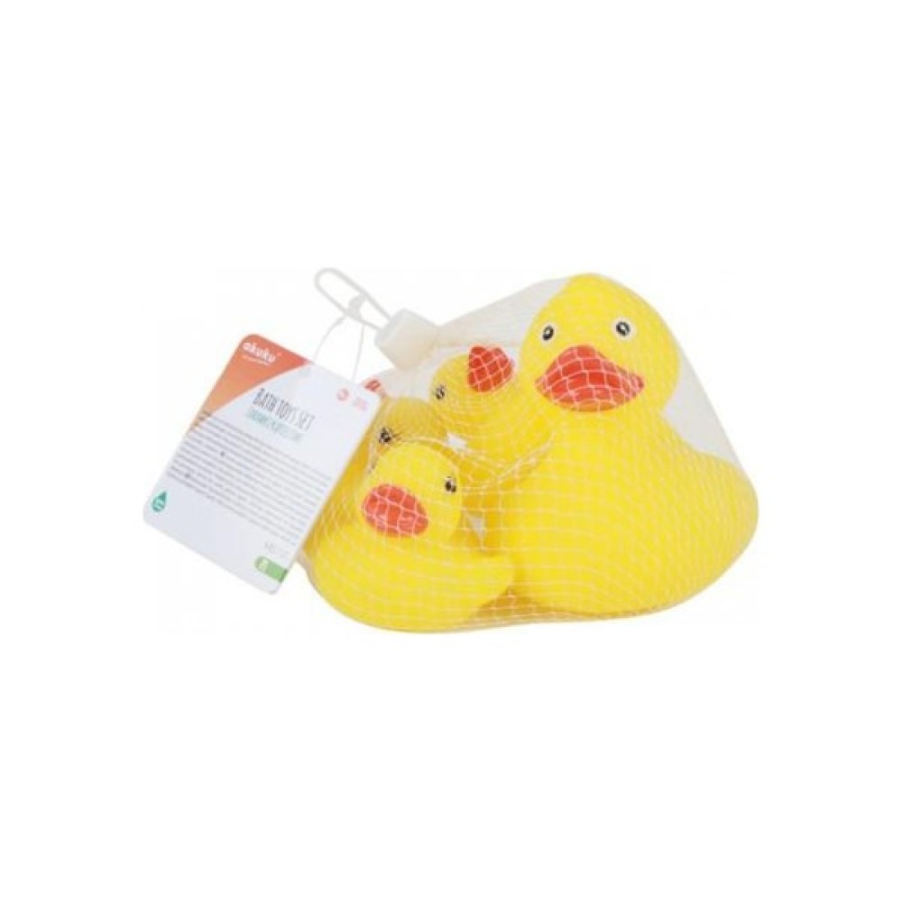 4 красиві каченята від бренду Akuku. У кожної дитини має бути така сім'я у ванній кімнаті. У набір входять 4 гумові іграшки: качечка-мама та 3 каченя. Через гру дитина пізнає навколишній світ. У кожній іграшці є отвір, через який можна розбризкувати воду. Округлі форми гарантують безпеку під час гри. Виготовлений із якісних, безпечних матеріалів.