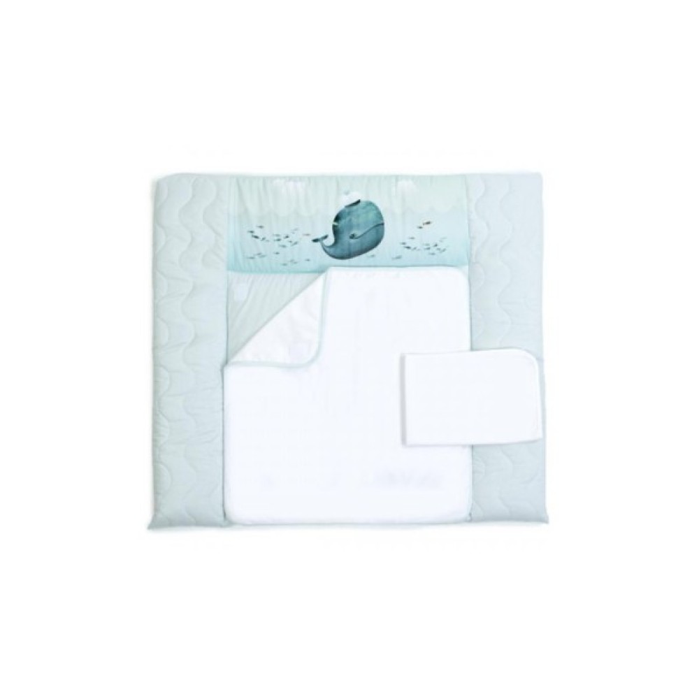 Сповивальний матрац Menthol whale 72*80 без жорсткої основи. М’яка та приємна на дотик поверхня та м’який наповнювач виробу створює максимальний комфорт при використанні (перевдягання, зміна підгузку, масажі, «повітряні ванни» тощо). Розмір матрацу розрахований на розмір сповивального місця комодів-пеленаторів виробництва «Верес». Також може використовуватися на будь-якій іншій поверхні.