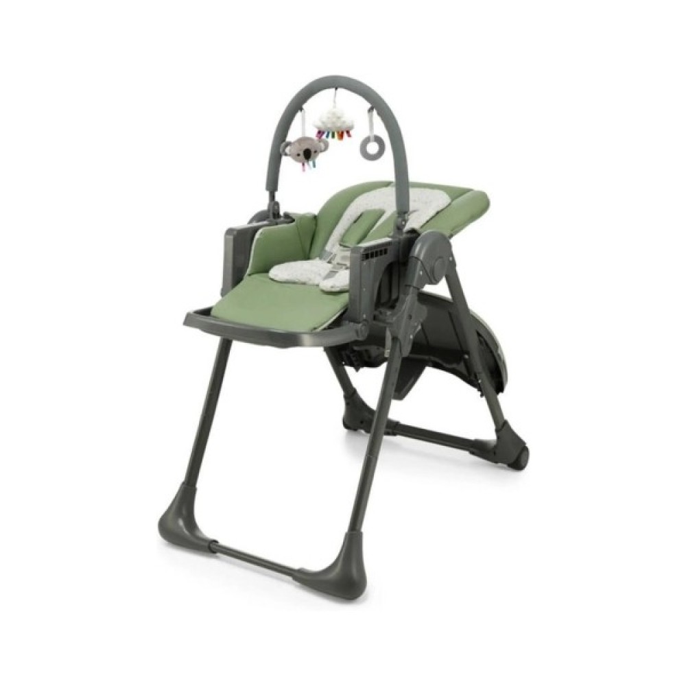 Просто відрегулюйте спинку і підніжку та замініть іграшкову планку на тацю, щоб перетворити TUMMIE з лежака на стільчик для годування і навпаки.