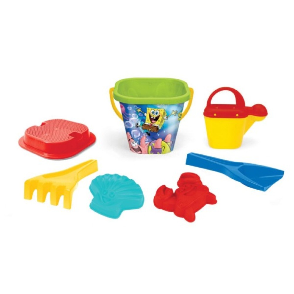Комплект для ігор у піску, що складається з 7 елементів в класичних кольорах і зображенням героїв із мультфільму «Губка Боб» сподобається всім шанувальникам цього мультфільму, а також просто діткам, які люблять гратись у піску.