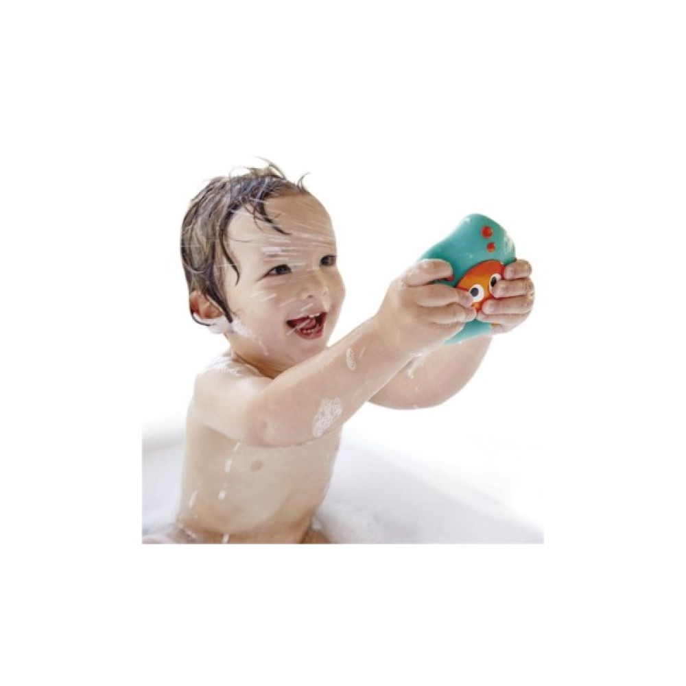 У комплект входить 2 іграшки: восьминіг та морська зірка. Обидва герої вміють триматися на воді. А якщо їх наповнити водою та стиснути, вони бризкатимуть. Восьминіг бризкає воду із щупалець, а морська зірка – із ніжок. На животі та лапках морської зірки розташовані присоски, за допомогою яких іграшка кріпиться до кахлю або ванни. Для легкого чищення у морської зірки виймається «обличчя».