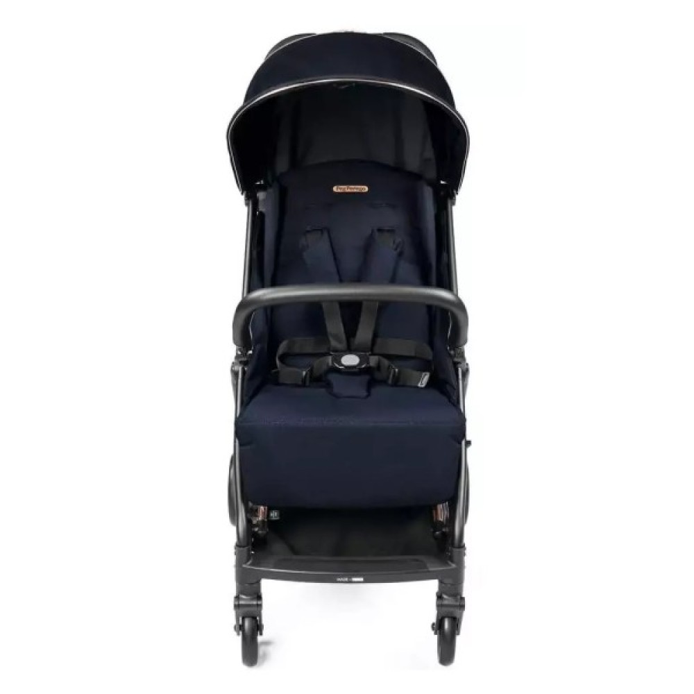 Коляска легко складається, просто від натискання кнопки на ручці. Бампер з екошкіри, використовується як ручка для перенесення коляски у складеному вигляді. Займає дуже мало місця, завдяки своєму компактному розміру. Стійка в складеному вигляді. За допомогою додаткових адаптерів (докупаються окремо), на коляску можна встановити автокрісло Primo Viaggio. Стильні кольори: Graphic Gold, Jaguars, Mon Amour.