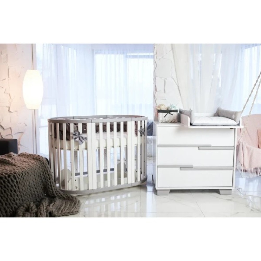 - Ліжечко оснащене поперечним маятниковим механізмом гойдання, абсолютно безшумним, також є пеленальний столик, який полегшить щоденний догляд за малюком