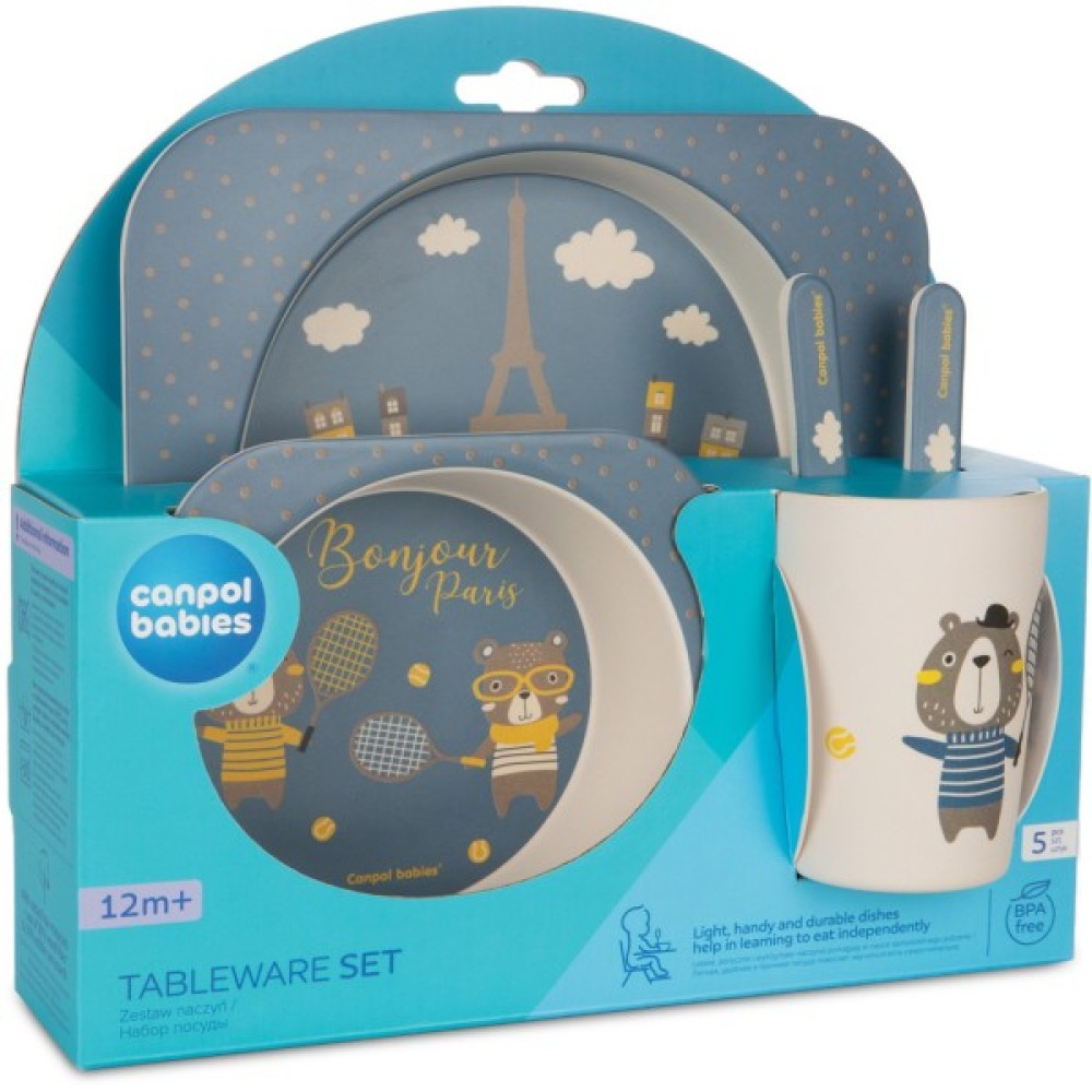 Набір, дитячого, посуду, Canpol, babies, BONJOUR, PARIS, посуду, 5, ел, синій, 9227blu