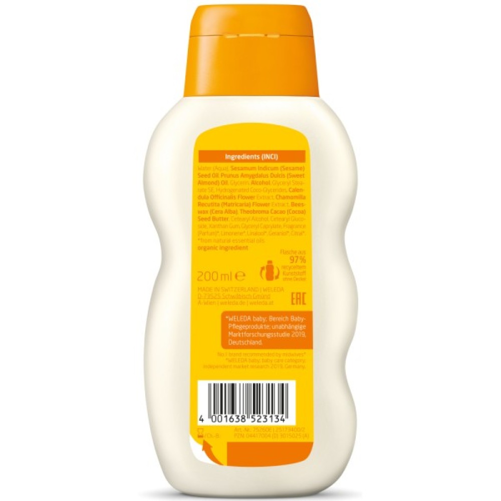 Повністю натуральне молочко для догляду за шкірою малюка. Легко вбирається, нежирне. Ідеально підходить для використання після купання. Легке зволожувальне молочко завдяки екстрактам органічних календули та ромашки підтримує здорові функції шкіри малюка. Делікатні органічні олії мигдалю й кунжуту, ідеально сумісні з ліпідами шкіри малюка, ніжно доглядають за нею, забезпечують тривалий захист від втрати вологості та стимулюють нормальний розвиток шкіри.