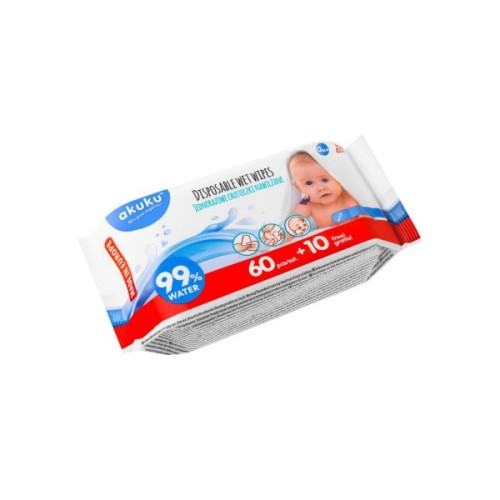 Одноразові серветки марки Akuku, змочені на 99% водою. 1%, що залишився, включає гліцерин, сік листя алое, лимонну кислоту та іонне срібло. Вони допомагають захистити ніжну шкіру малюка. Вони не містять спирту та парфумерії. Вони абсолютно безпечні для ніжної шкіри немовляти. Їх також можуть використовувати дорослі для щоденної гігієни рук та обличчя. Завдяки зручній упаковці їх можна брати з собою на прогулянку та подорож.
