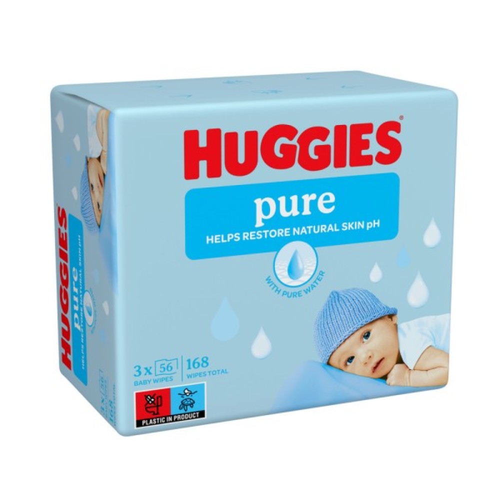 Вологі серветки Huggies Ultra Comfort Pure 56 х 3 шт (5029053550091) - це багатошарові серветки, які прекрасно очищають шкіру малюка. Серветки дуже ніжні і м'які. Їх просочення pH збалансована і не містить спирту.