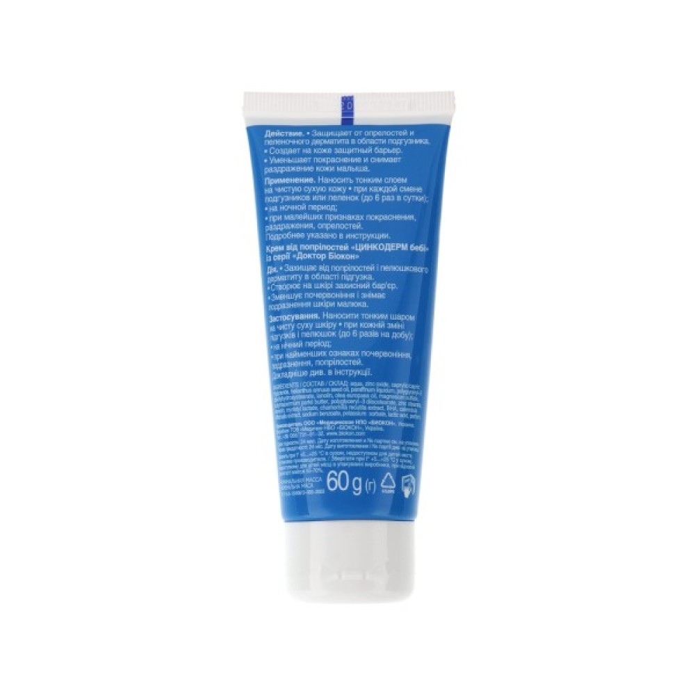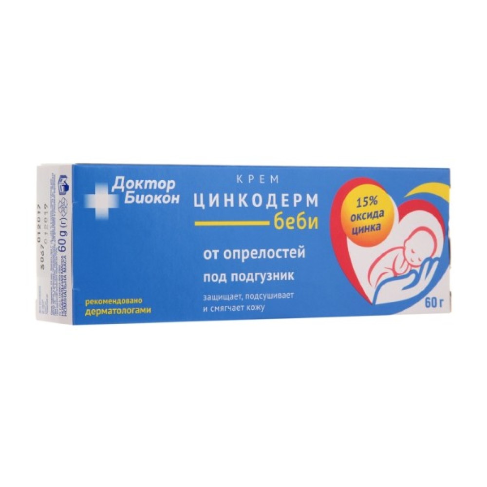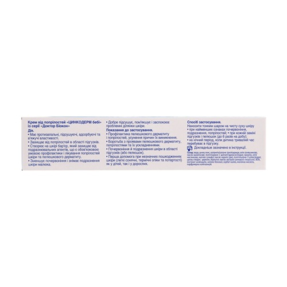 Крем "Цинкодерм бебі" застосовується для захисту ніжної шкіри дитини від попрілостей, а також для усунення наявного висипу, свербіння й хворобливих відчуттів, відновлення шкірного покриву та зміцнення його захисних функцій. Основними інгредієнтами дитячого крему є оксид цинку, екстракти ромашки та календули, олії оливи й ши. Цілющі властивості цих компонентів забезпечують усунення запальних процесів, загоєння ранок, відновлення здорового стану шкіри дитини.