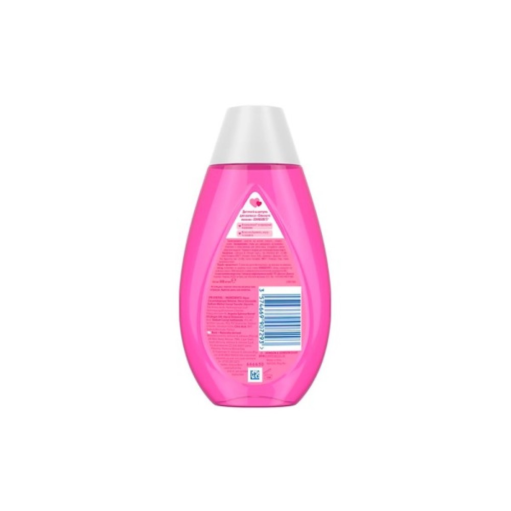 Johnson’s із серії Блискучі локони розроблений на основі спеціальних мийних компонентів, які не викликають сльоз навіть у разі випадкового попадання в очі. Склад також збагачений натуральним екстрактом шовку та аргановою олією. Такі компоненти надають волоссю м’якості й шовковистості, роблять його гладким. Основні переваги продукту: