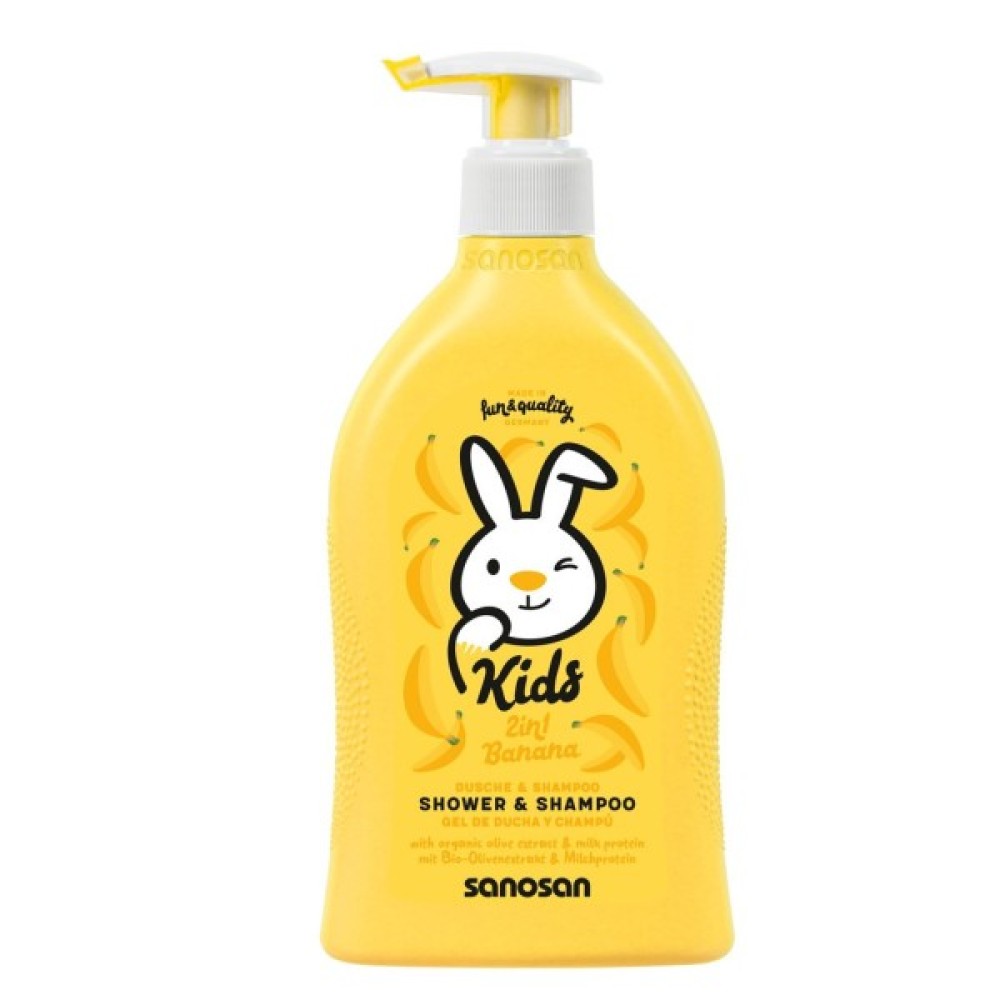 Sanosan Kids шампунь-гель 2 у 1 з ароматом банана.