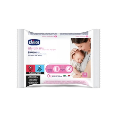 Антисептичні серветки Chicco для делікаткого догляду за грудьми під час природного вигодовування.