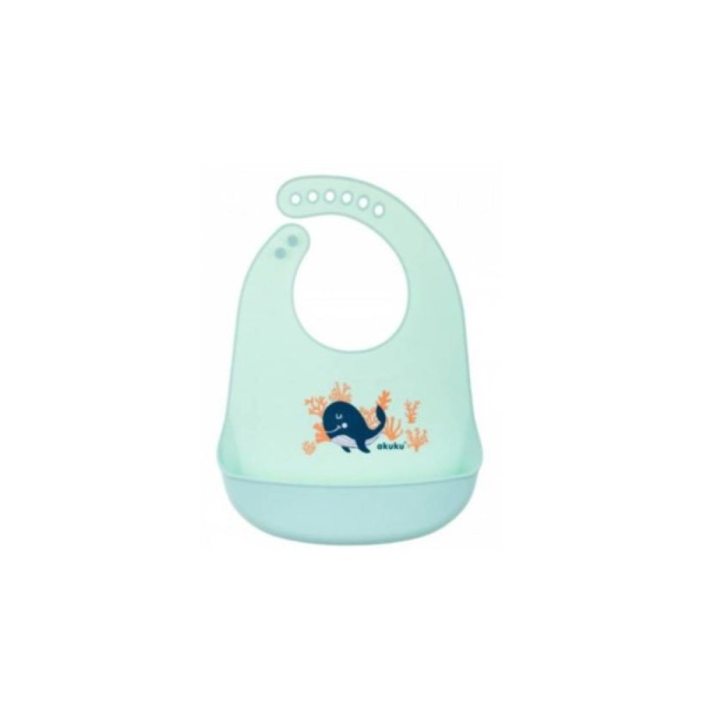 Практичний водонепроникний силіконовий нагрудник захистить одяг малюка від забруднення. Має зручну кишеню, яка зупиняє залишки падаючої їжі.