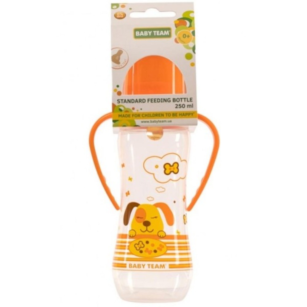 Пляшка класичної форми зробить годування малюка простішим як удома, так і на прогулянці. Соска пляшечки виготовлена з натурального латексу — міцного, м'якого й еластичного матеріалу. Яскрава кришечка надійно захищає соску від забруднення, а пляшечку від випадкового відкривання. Нанесена на пляшечку рельєфна мірна шкала не зітреться, навіть під час постійного користування — ви завжди з легкістю зможете визначити, скільки мілілітрів рідини залишилося в пляшці. Зручні ручки дають змогу впевнено тримати пляшечку в руках під час годування, а барвистий малюнок і яскравий колір сподобаються вашому малюкові.