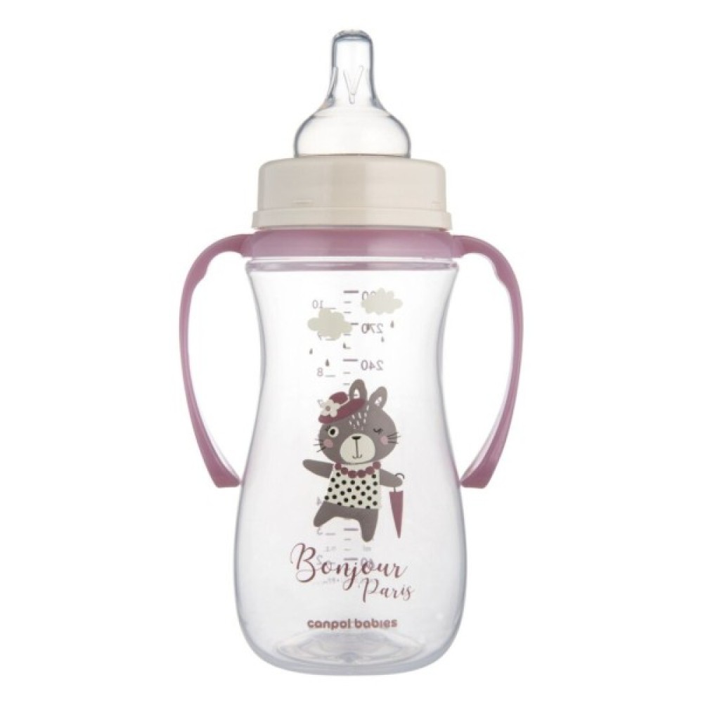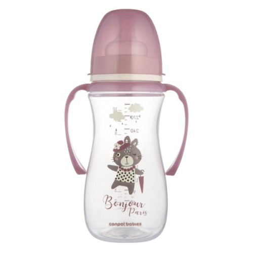 Пляшка антиколікова з широким отвором та ручками 300мл Easystart Bonjour Paris від Canpol babies - стильна пляшечка малюка!