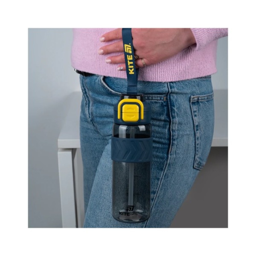 Пляшечка для води Kite — для тих, хто завжди в русі. Завдяки класичній формі, вона зручно лежить у руці, а силіконове кільце-тримач забезпечує надійне захоплення навіть під час активних занять спортом. Стильне поєднання акцентних кольорів виглядає сучасно — така пляшка стане улюбленим супутником у тренажерному залі, у поході чи на заняттях.