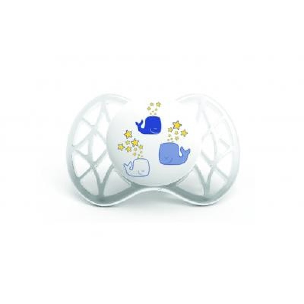 Набір двох пустушок з симпатичним дизайном. Пустушки симетричні, ортодонтичні і до того ж світяться у темряві. Педіатри рекомендують використовувати пустушку для немовлят. Такий атрибут заспокоює дитину, забезпечує заспокійливу і розслабляючу дію для дитини, сприяє правильному розвитку піднебіння, ротової порожнини. Пустушка Nuvita з інноваційною формою та матеріалом адаптована до віку дитини та її природніх потреб. Виріб можна стерилізувати. Для дітей від народження.