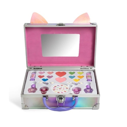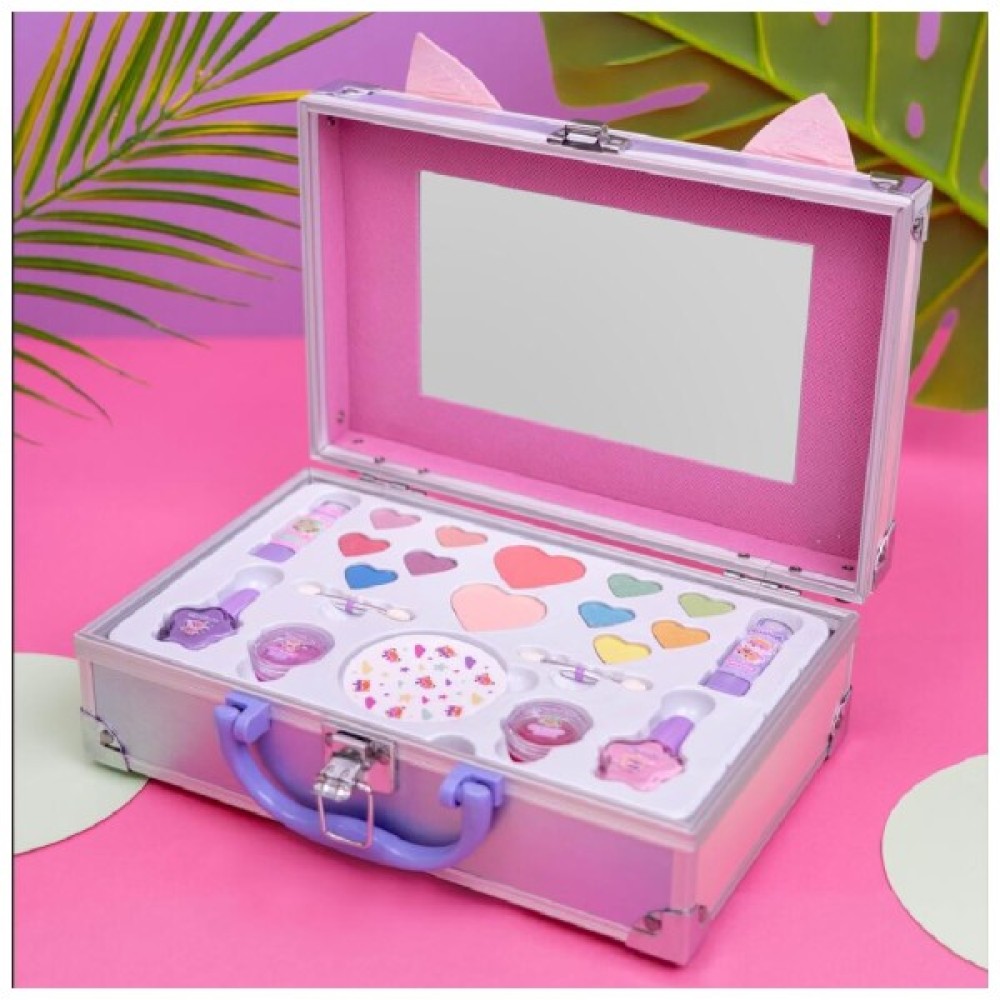 • Компактний формат: Усі косметичні засоби та аксесуари акуратно розміщені всередині кейсу.