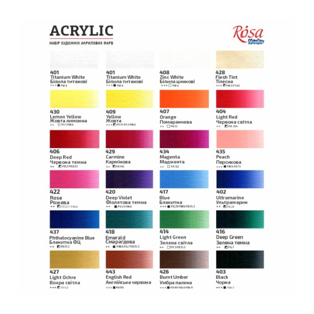 Акрилові фарби Rosa Studio 24 кольорів 20 мл (4823098538127)