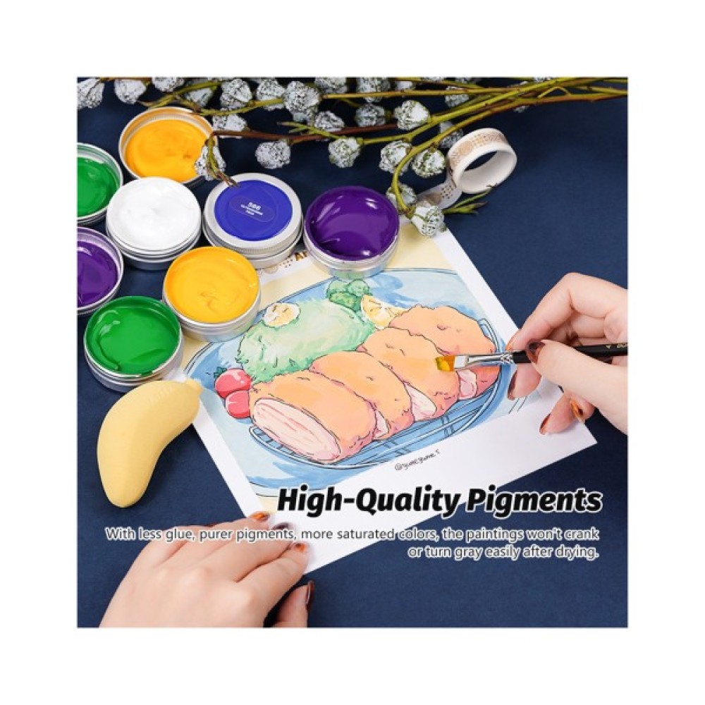 Удосконалено формулу фарби Arrtx, у цій гуаші менше клею, чистіші пігменти, більш насичені кольори, менше запаху. Коли картина висохне, вона не потріскається, а фарби залишаться яскравими і не потьмяніють довгий час.