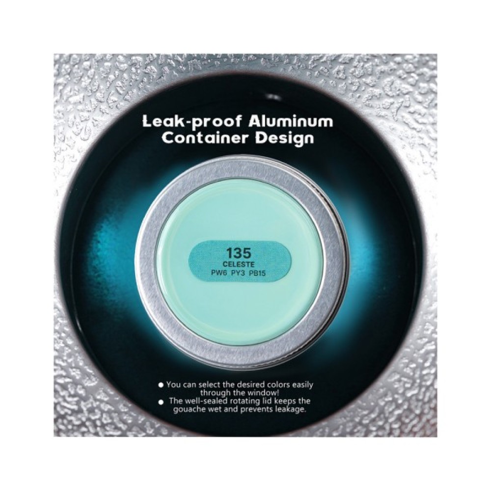 Баночки для гуаші виготовлені з легкого алюмінію, тому набір зручно носити з собою, а баночки можна використовувати повторно.