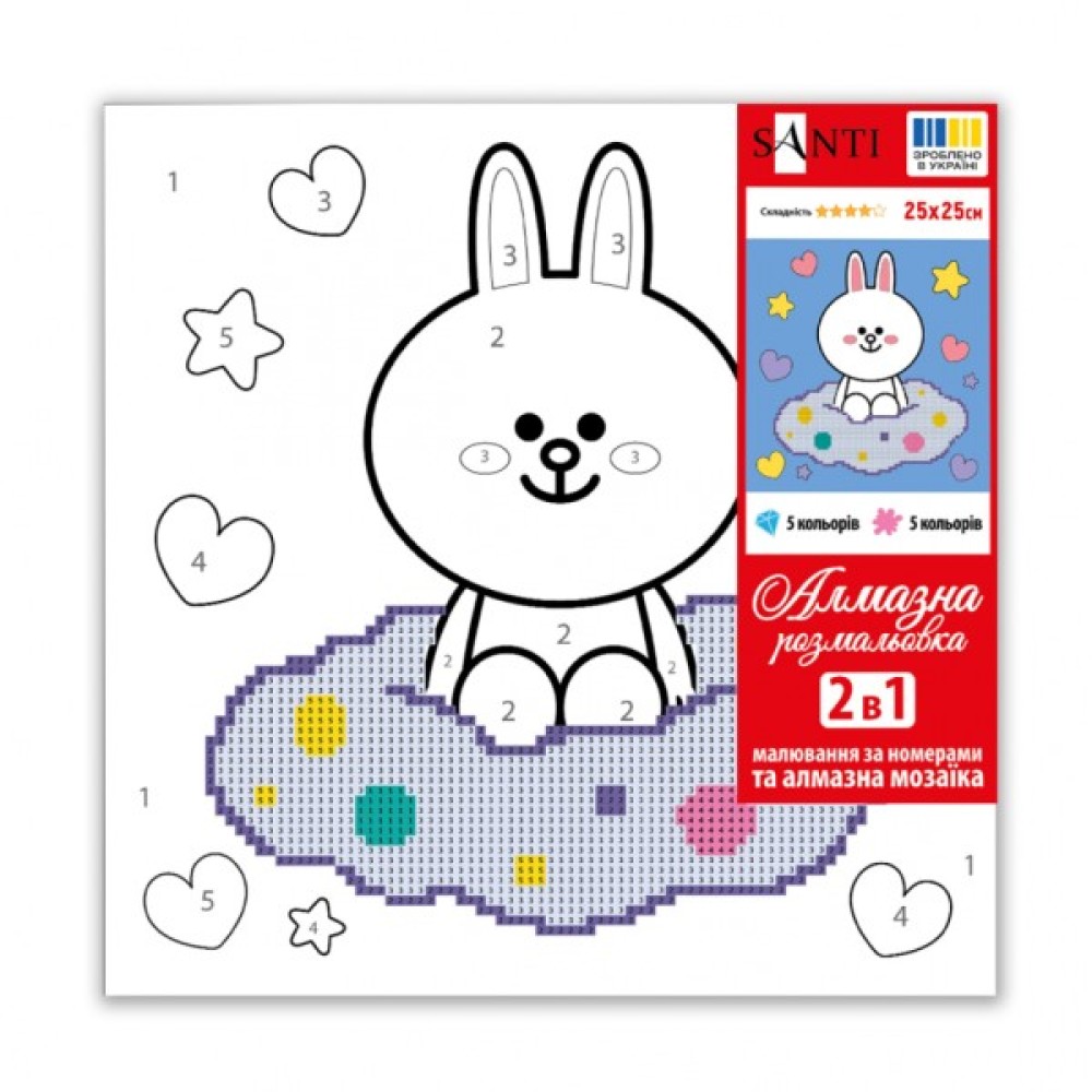 Картина за номерами з алмазною мозаїкою ТМ SANTI "Лайн Френдс. Коні на хмаринці" виготовлена з натуральних, екологічно чистих матеріалів, що робить малювання комфортним і безпечним навіть для найменших художників.