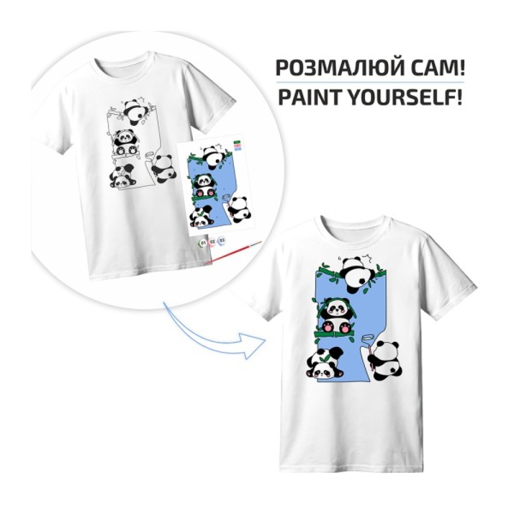 Набір для творчості Rosa футболка-розмальовка, Funny Рandas, бавовна 100, розмір XS (4823098544883)