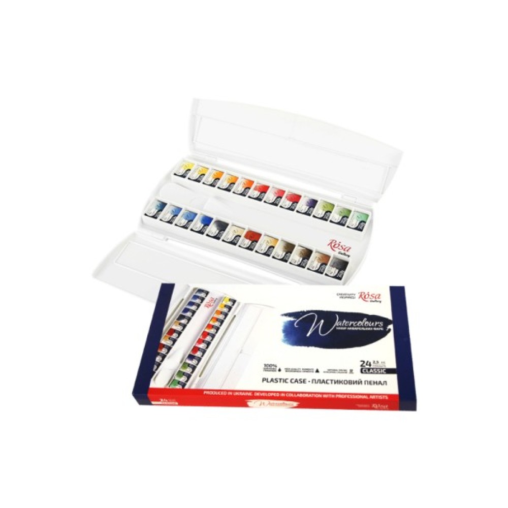Акварельні фарби Rosa Gallery Класика пластиковий пенал 24 кольори (4823098519294)