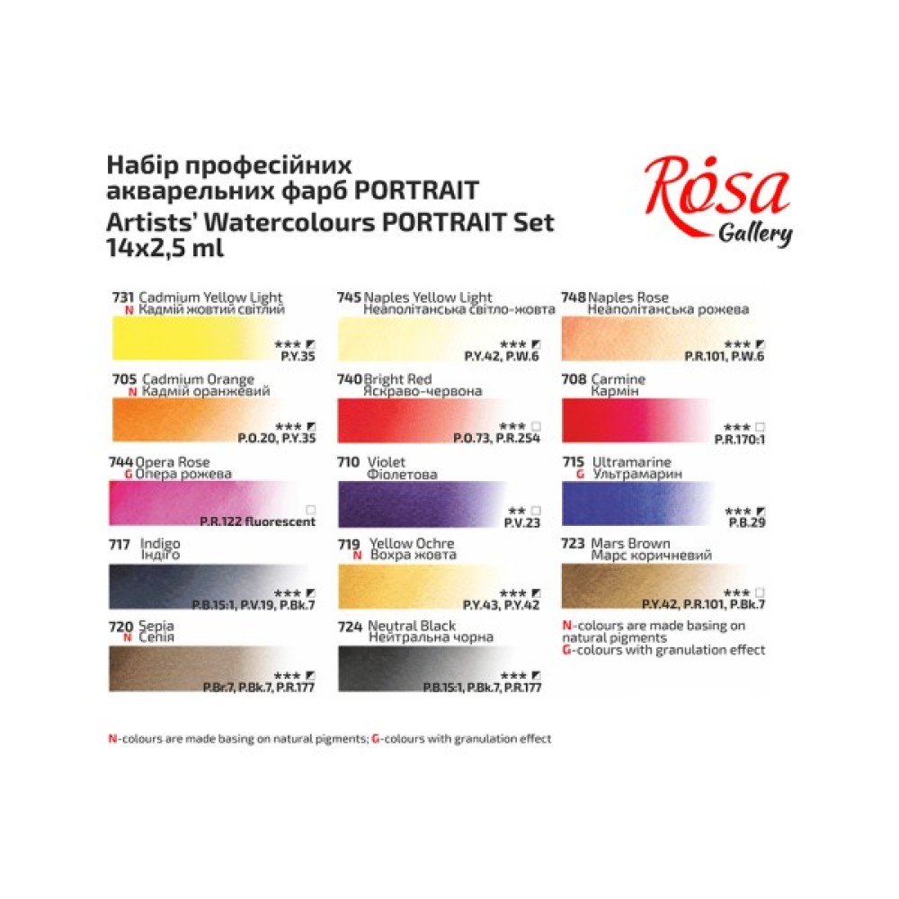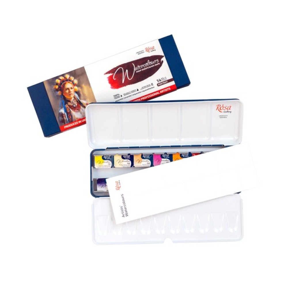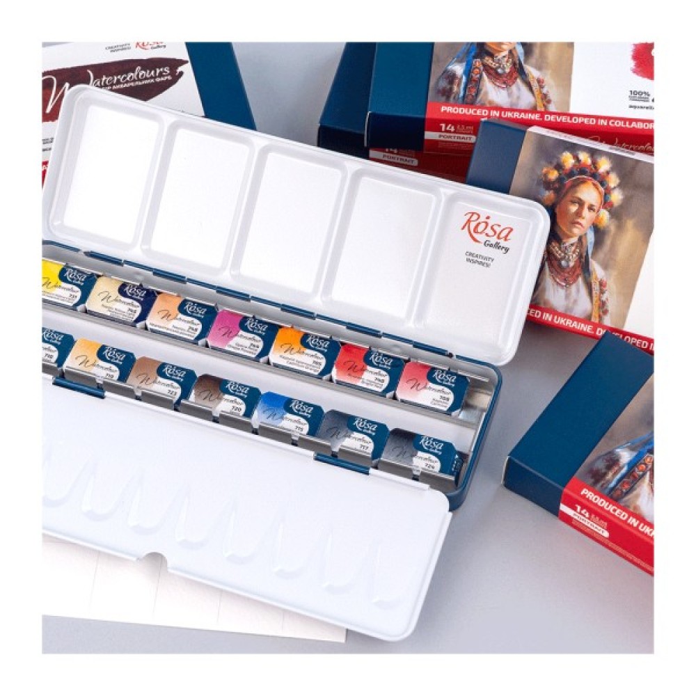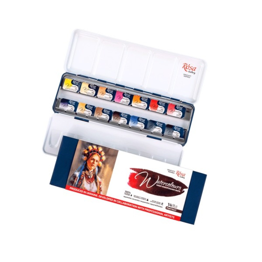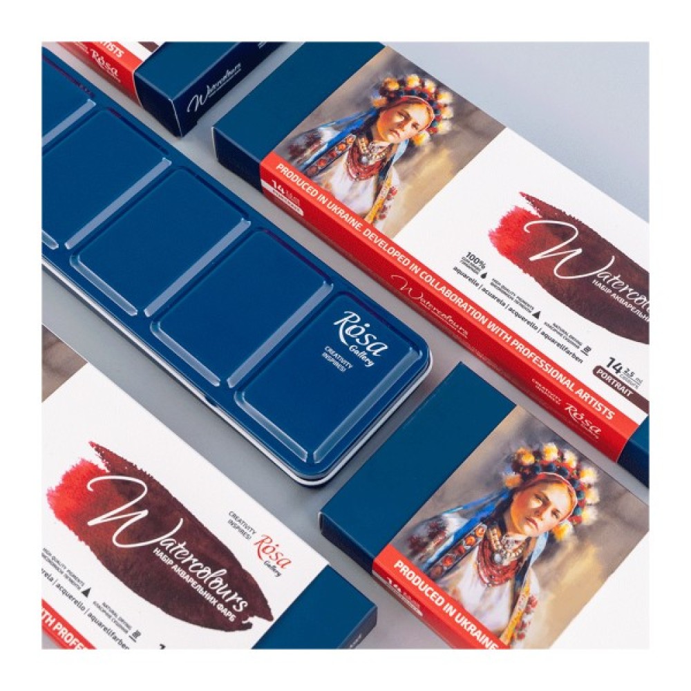 Набір професійних художніх акварельних фарб Portrait на 14 кольорів від ROSA Gallery сформований з кольорів, що дозволяють отримати широку палітру для відображення людського тіла.