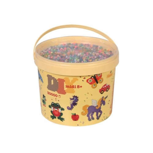 Набір кольорових намистин Hama Midi. Використовуючи поля, намистини та різноманітні схеми створюйте фігурки, картини та модні прикраси. Складання картинок з мозаїки сприяє розвитку творчих здібностей, дрібної моторики, концентрації уваги, посидючості та акуратності. Набори серії Midi з діаметром намистин 5 мм користуються величезною популярністю як у дітей, так і у дорослих. Форми можна використовувати кілька разів.