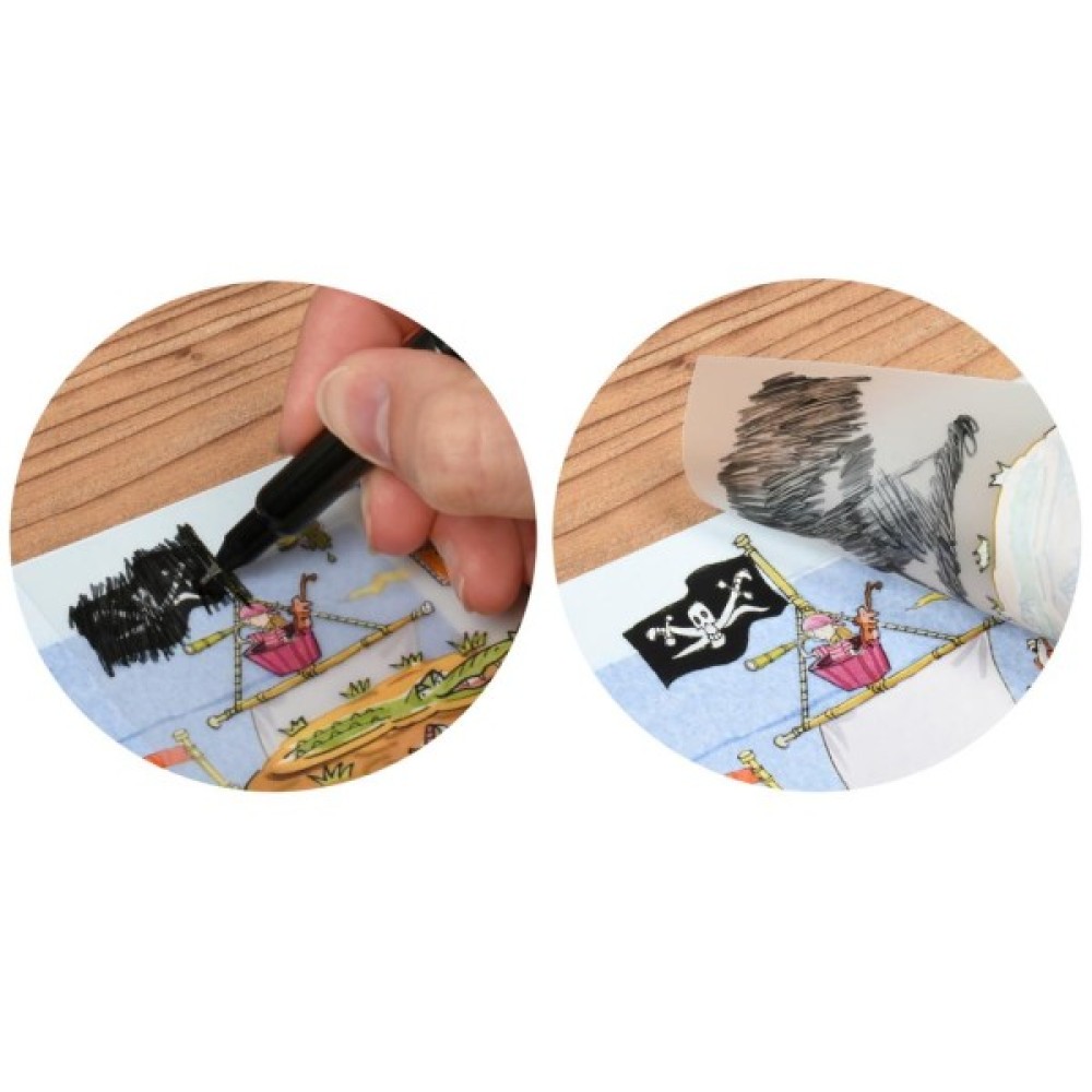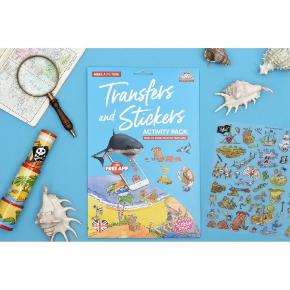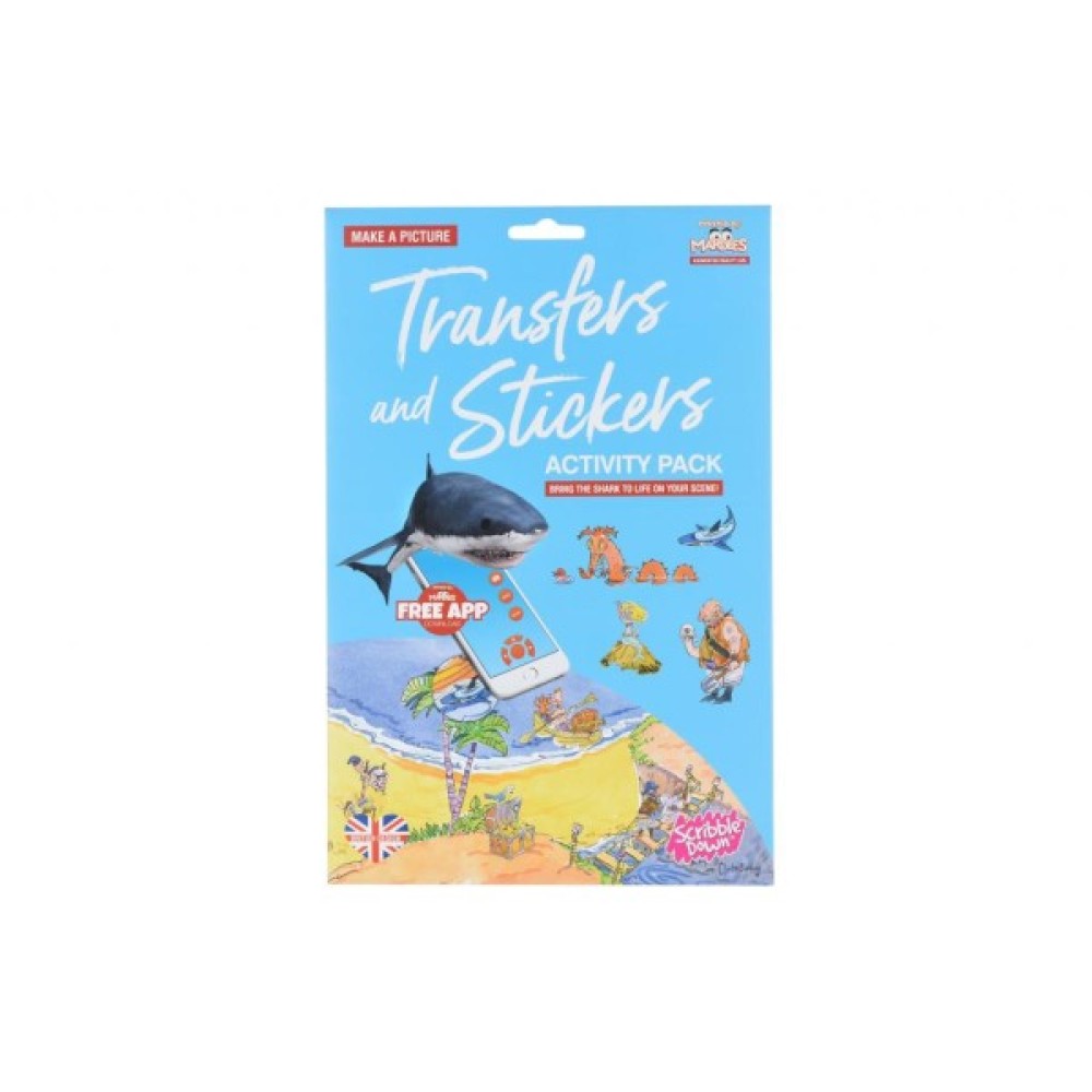 Перевідні наклейки Scribble Down "Пірати" з онлайн додатком - універсальний набір для творчості. Застосування різноманітне - перетворення різних предметів за допомогою обраних наклейок з набору, доповнення / створення власної історії, сюжету або гри. За допомогою безкоштовного додатку Mardles можна "оживити" наклейку повітряної кулі! Наклейки легко переносяться, досить лише прикласти картинку на передбачувану для переводу поверхню і заштрихувати олівцем, кульковою ручкою або будь-яким предметом, яким можна настиснути на площу картинки, яка переводиться . При цьому не натискаючи на сусідні картинки. Акуратно підняти лист носія з картинками - піднімаючи, картинка залишиться на поверхні. Підходить для переводу на будь-яку пластикову, паперову, металеву та іншу поверхні.