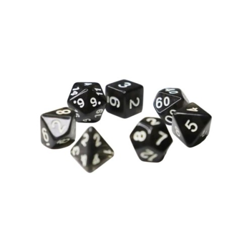 Універсальний набір, що складається з семи стильних гральних кубиків - чотиригранника, шестигранника, восьмигранника, десятигранника, десятигранника з числами другого розряду, дванадцятигранника і двадцятигранника.