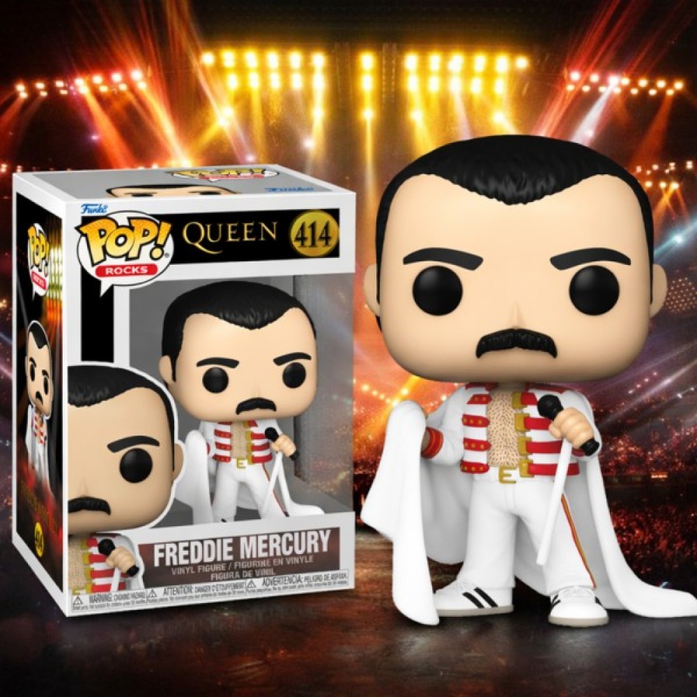 Ігрова фігурка FUNKO POP! – ФРЕДДІ МЕРК'ЮРІ В ТУРНЕ зображує легендарного фронтмена гурту Queen у його культовому сценічному образі з турне «We Will Rock You». Білосніжний костюм із червоними та золотими акцентами, мікрофон і накидка — усе, що потрібно для яскравого виступу на уявній сцені вашої колекції.