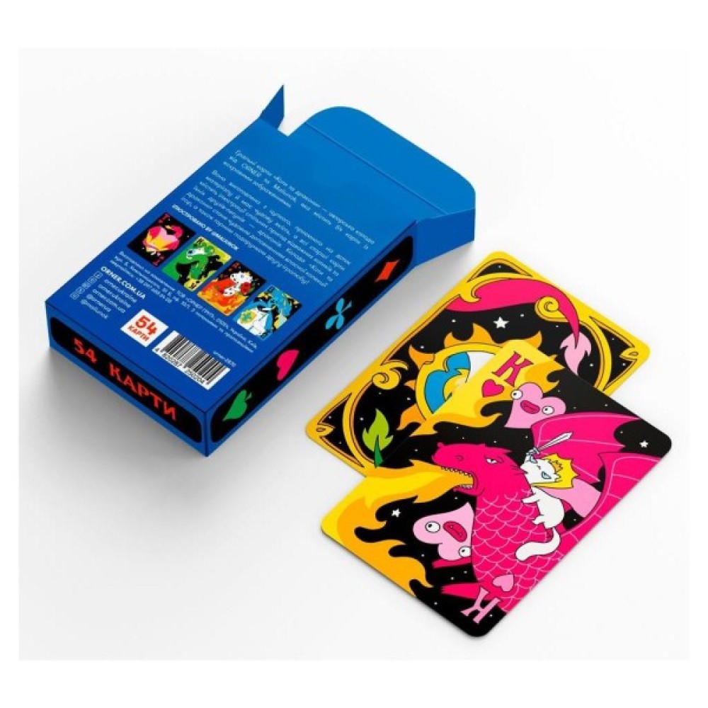- має 54 яскраві карти гарної якості з ілюстраціями Maliunok;