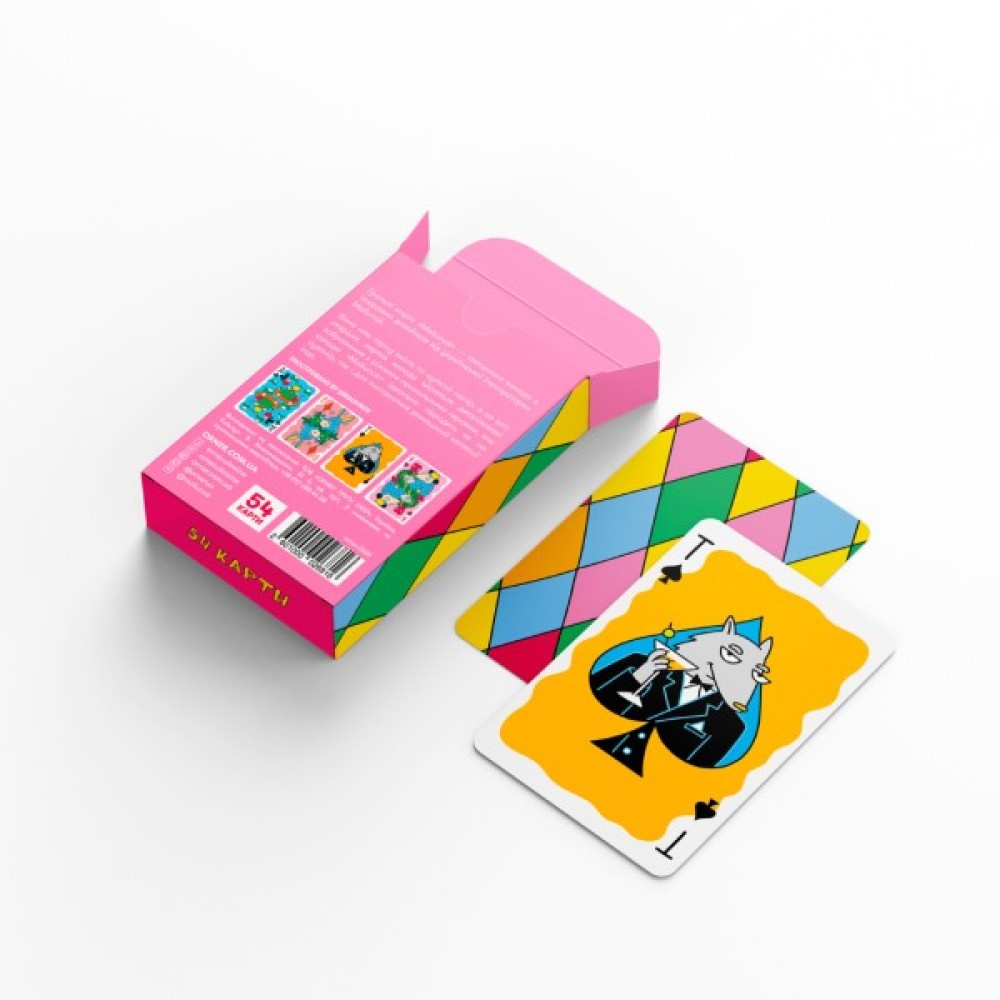 - всі старші карти (від валета й до туза) мають смішні деталізовані ілюстрації від української художниці Maliunok;