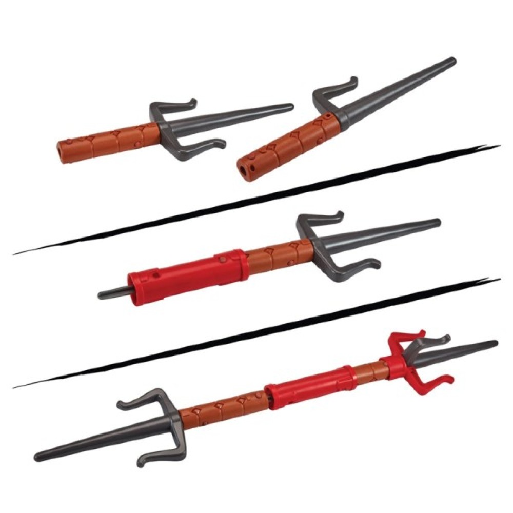 Коли лиходії атакують, вивільни силу своїх Кинджалів-Сай, вставивши додаткову рукоятку до рукоятки кинджалів! Вирівняй з’єднувальні роз’єми та кнопки, та поверни рукоятку, щоб зафіксувати їх.
