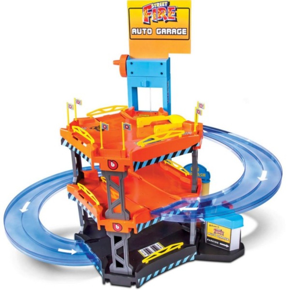 Трирівневий гараж в ігровому наборі з автотрасою і двома машинками від компанії Bburago обов'язково сподобається юним автомобілістам.