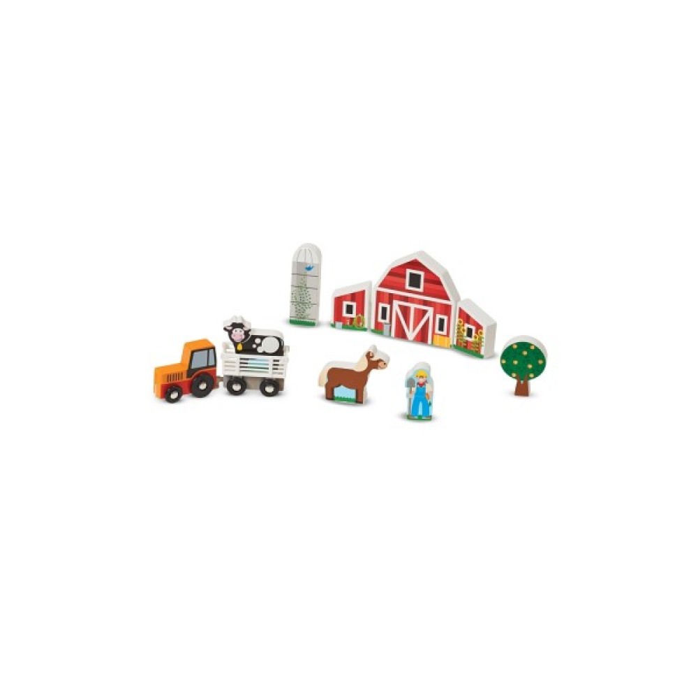 Дерев'яний ігровий набір "Ферма і трактор" включає в себе 33 дерев'яних елемента сільськогосподарської тематики: тварини, що живуть на фермі, трактор, будівлі, дерева, чоловічки і багато іншого.