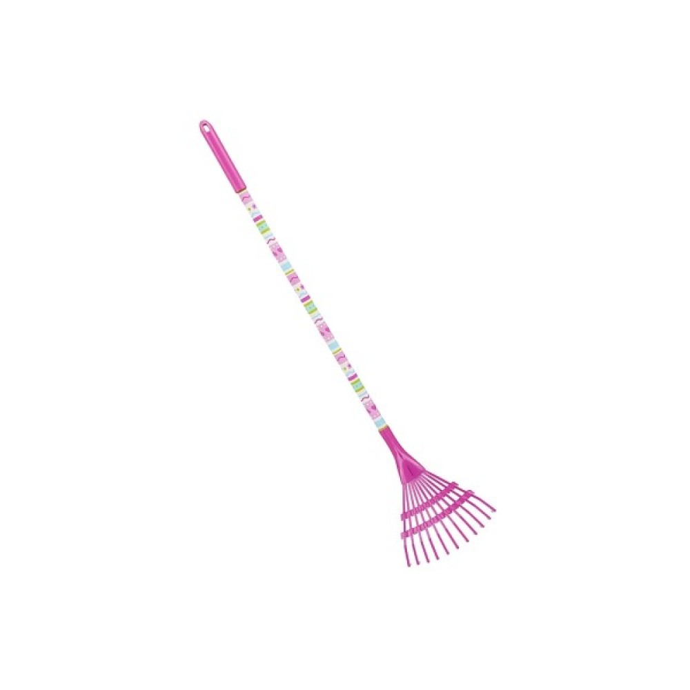 Робота у дворі ніколи не є клопотом, коли Giddy Buggy допомагає! Ці веселі та міцні граблі, розроблені саме для молодих помічників, мають міцні металеві зубці, завдяки яким діти шести років, легко прибирати листя та гілочкі. Яскрава пофарбована дерев 'яна шахта має веселі смужка та увінчана усміхненім Обличчям Дідді Баггі. Граблі акуратно зберігаються із зручною петлею у верхній частині для підвішування.