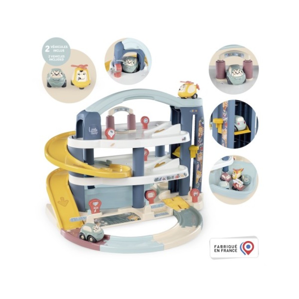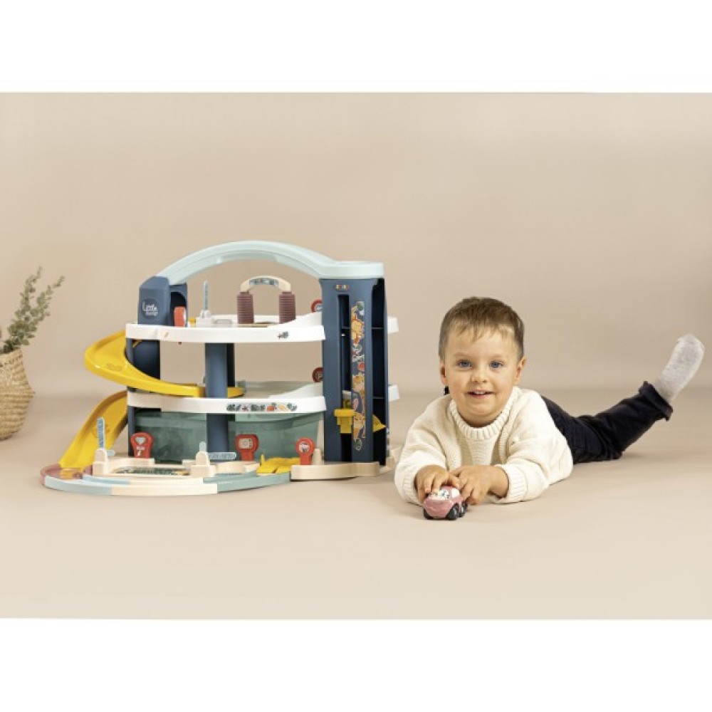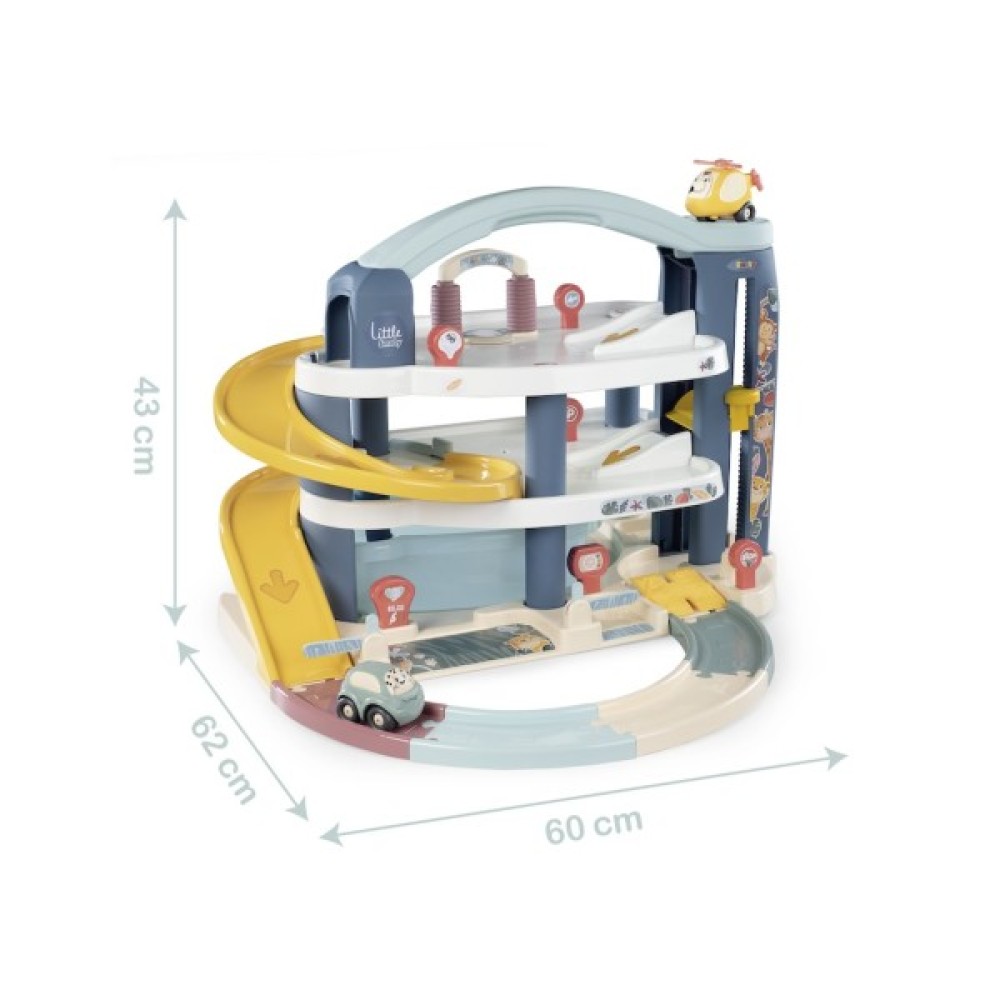 Ігровий набір Smoby Little "Великий гараж" – це захоплююча пригода для вашого маленького гонщика! Цей автотрек має три поверхи, на яких розташовані парковка, автоматична автомийка та автомайстерня. До комплекту входить міні-машинка і міні-гелікоптер, які додадуть грі ще більше драйву.
