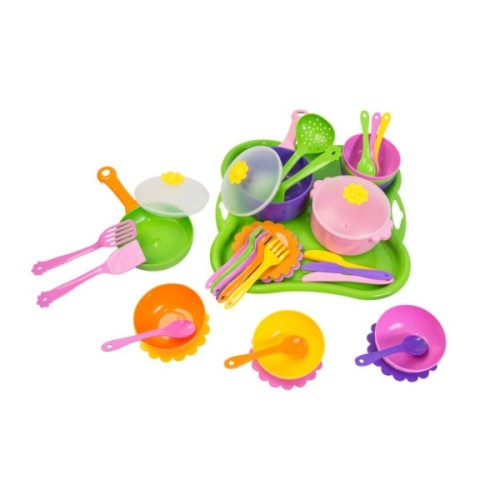 За допомогою ополоника можна розливати страви в тарілки і миски гостей. Ложки, вилки і ножі дозволять в ігровій формі вивчити правила сервірування столу. Піднос зробить подачу страв більш зручною.